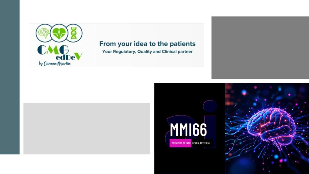 CMG MedDev S.L., con sede en Madrid y equipo experto, es una consultora especializada en soluciones a medida para dispositivos médicos, diagnóstico in vitro (IVD), software médico, MDSW y herramientas de IA en salud. Su misión es guiar a empresas e instituciones —desde la idea hasta el mercado— aportando experiencia en regulatory affairs europeos y americanos (MDR, IVDR, 510k, FDA), calidad (QMS, ISO 13485, 9001, 15189, 17025), documentación técnica, validación preclínica y planificación de estudios clínicos.linkedin+2